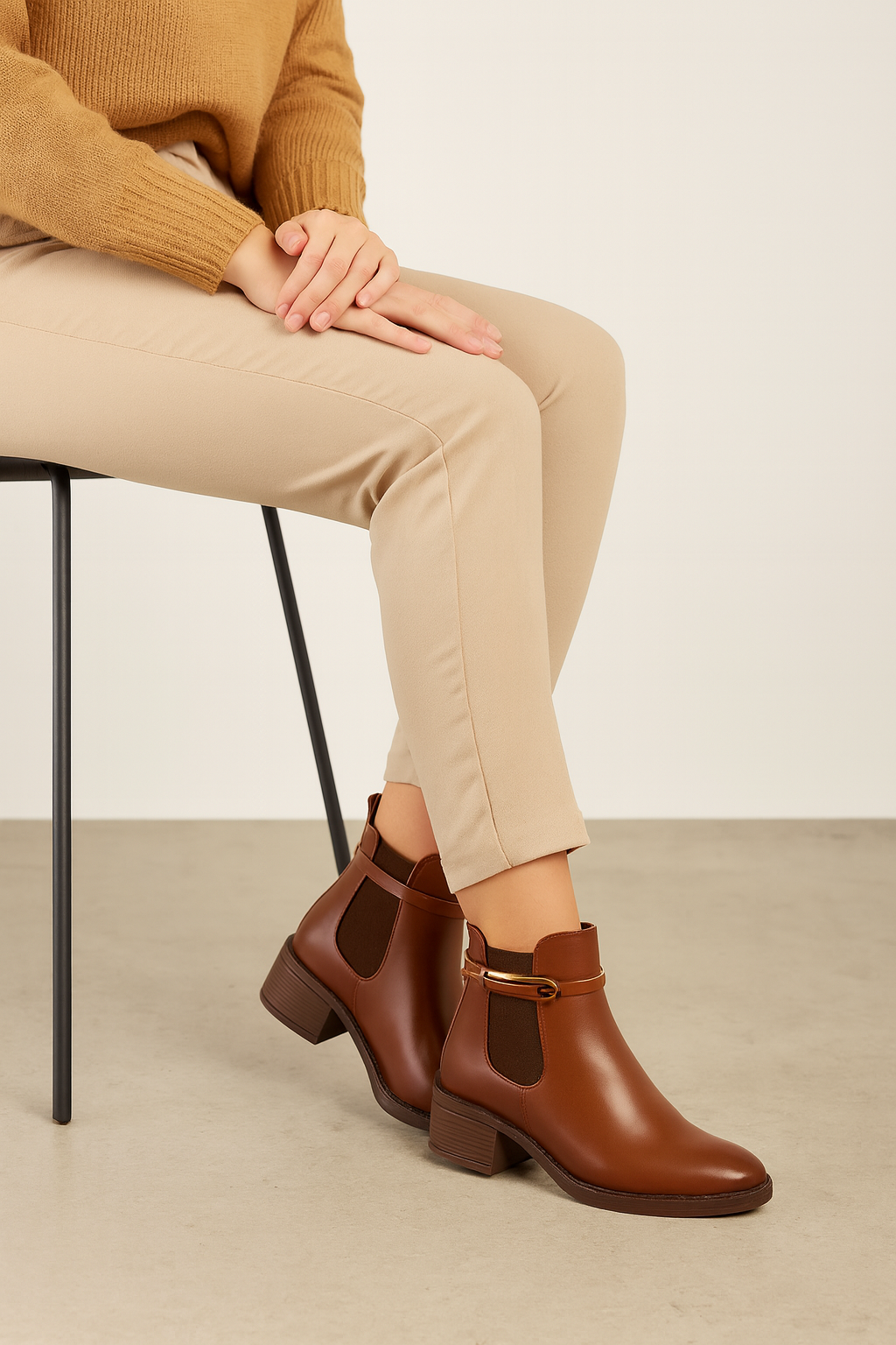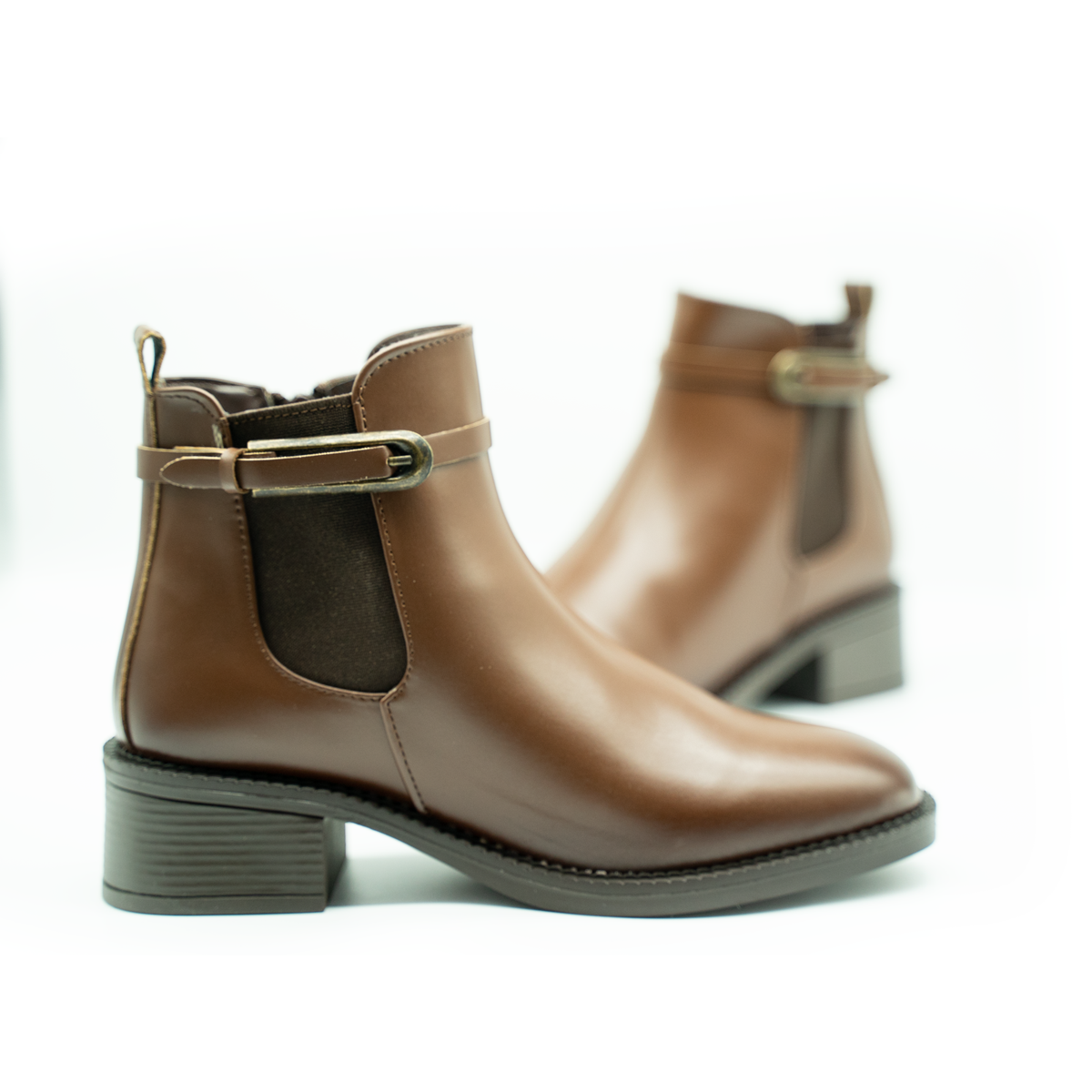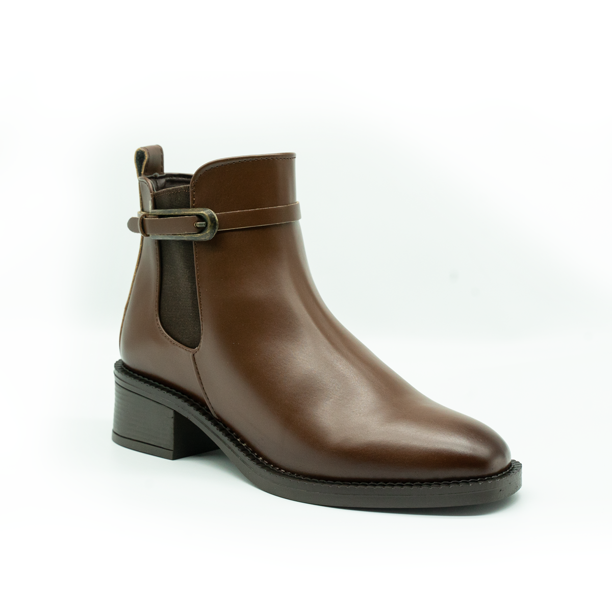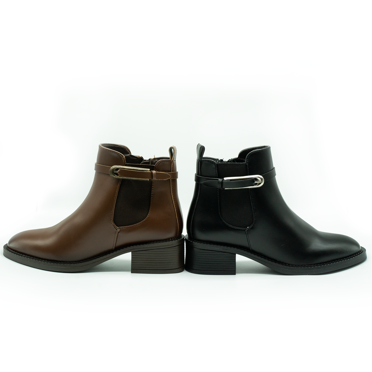 Eleva tu look con este botín de diseño sofisticado y versátil. Su acabado liso en tonos negro y café aporta un estilo atemporal, mientras que la hebilla lateral metálica añade un toque moderno y elegante. Cuenta con una altura de tacón aproximada de 5 cm, ideal para brindar estabilidad y comodidad durante todo el día. Perfecto para combinar con outfits casuales o formales, este botín es una opción práctica, estilizada y fácil de usar gracias a su ajuste cómodo y suela resistente. Un básico imprescindible para cualquier temporada.