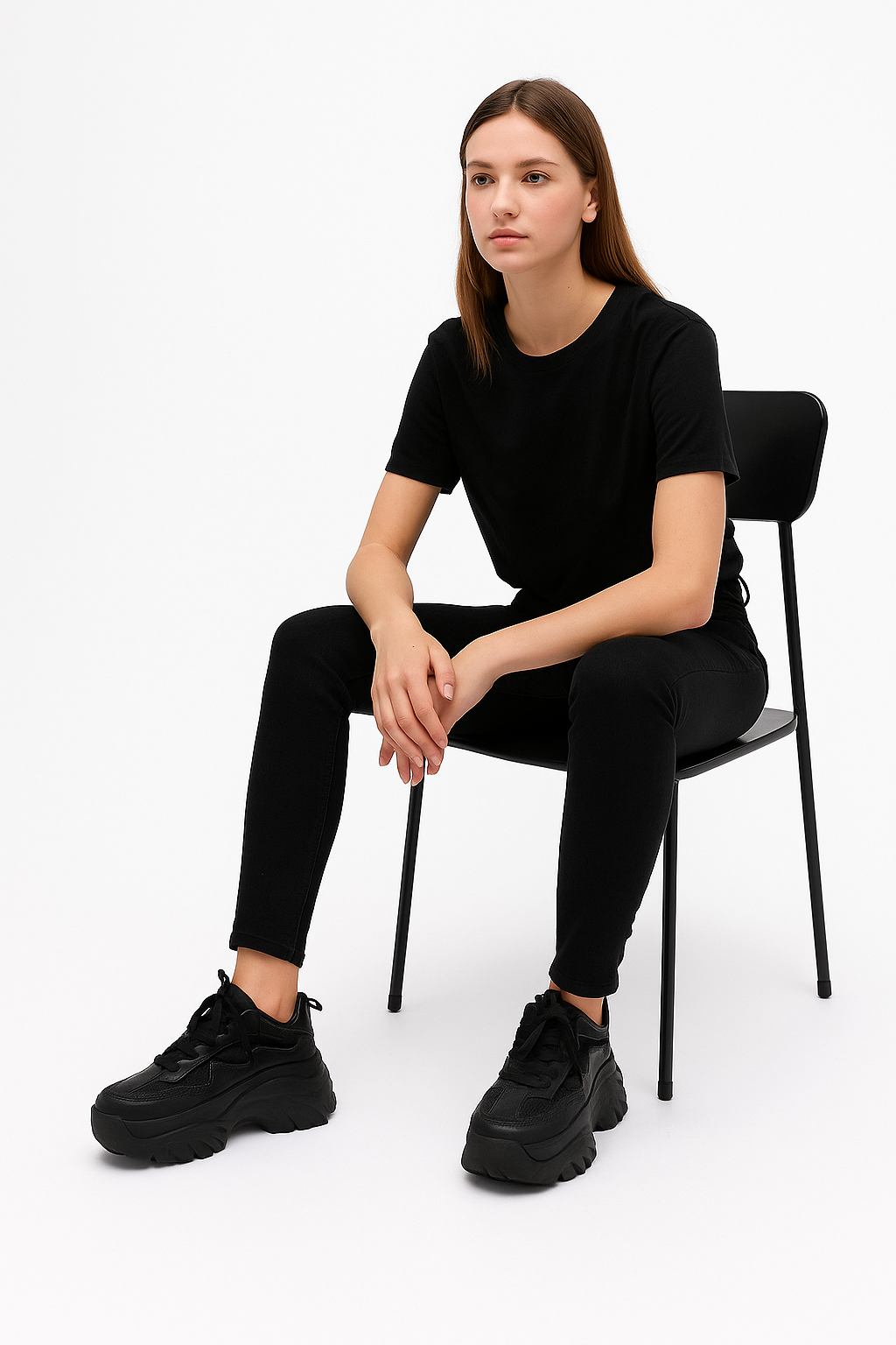 Tenis Con Plataforma Alta Tipo Deportivo Negro Con Brillo-53