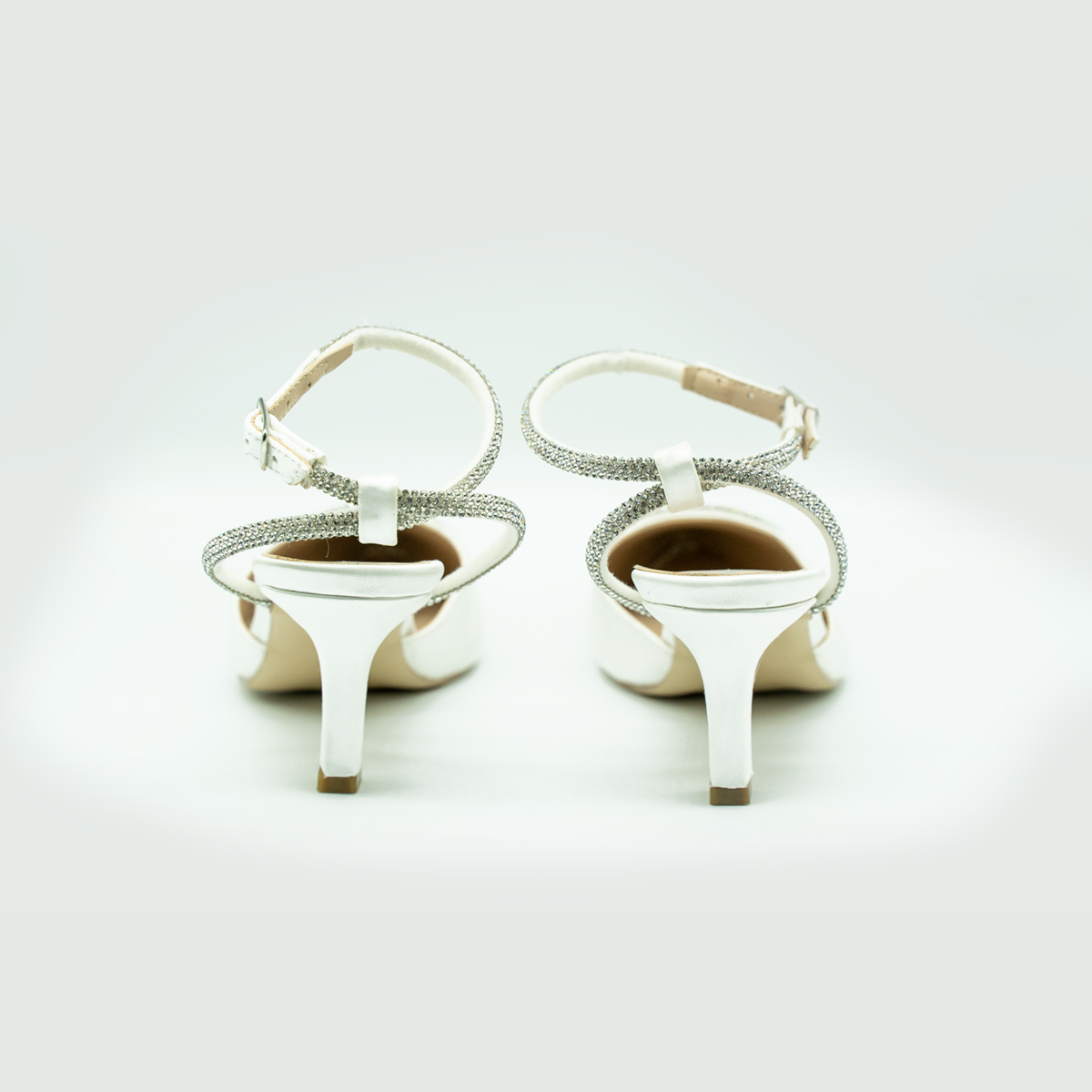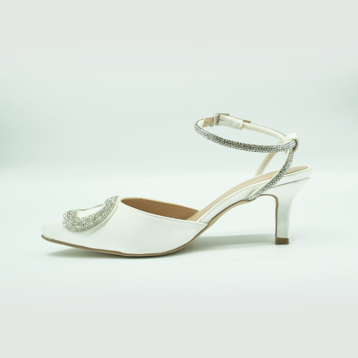 Eleva tu estilo con estos slingback satinados con pulsera de brillo, diseñados para destacar en cada paso. Su punta fina y la hebilla frontal con pedrería premium aportan un toque elegante que transforma cualquier look, desde eventos formales hasta outfits chic de diario.